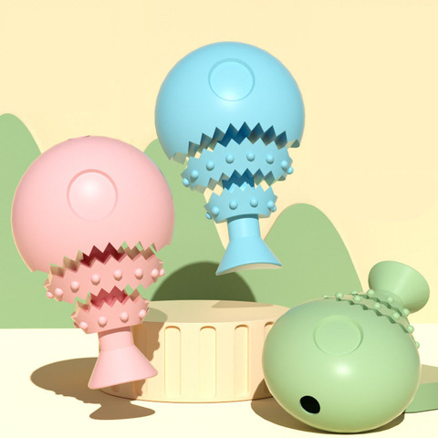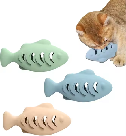 Divertido juguete de Limpieza de dientes estilo pez para gatos, perros, saludable, seguro, juguete de silicona para gatos de grado alimenticio con función de fuga de alimentos hecho de goma
