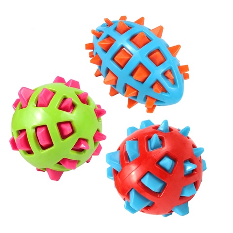 Durable TPR Squeaky Sound Dog Toys Dentición de púas y masticar Cachorro Limpieza de dientes Suministros para mascotas Ecológico y juguetón