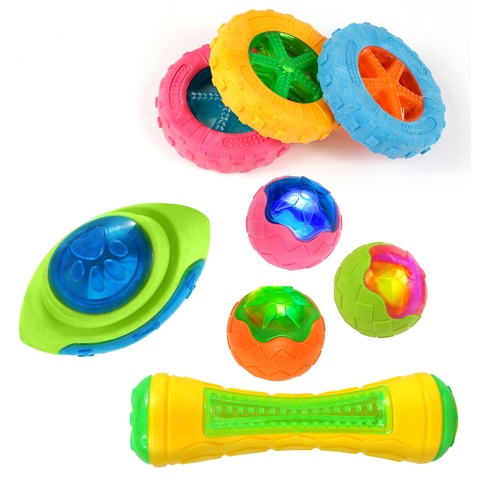 Juguete ecológico antimordeduras para perros con chirriador luminoso, suministros de entrenamiento TPR interactivos, dentición para cachorros, compañero perfecto para perros