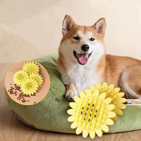 Nuevos y creativos juguetes ecológicos para masticar perros, divertidos juguetes de comida con fugas resistentes a mordeduras de goma sostenible en forma de girasol y TPR